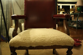 the arms finished. (and please excuse any messy bits you see on my carpet... nobody said it was a neat and tidy thing to reupholster a chair.)